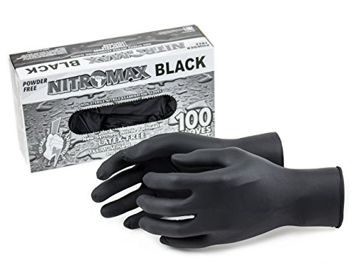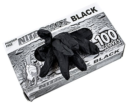 BG Black Nitrile Exam Gloves, 5 mil Thickness, Disposable, Non Sterile, Latex Rubber Free, Powder-Free (100, Large)