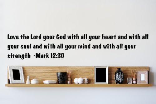 Design with Vinyl Love The Lord Your God With All Your Heart , Soul , Mind & Strength - Mark 12:30 Bible Quote Wall Decal Size : 10x30 Color : Black Black