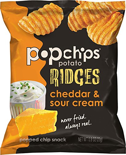 Popchips Single Serve Potato Ridges, Cheddar & Sour Cream, 0.8 Ounce, 24 Count