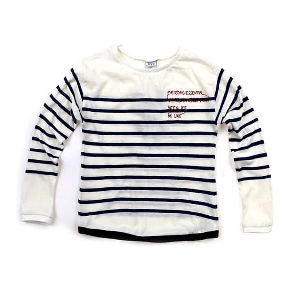 블로킹지는 블루컬러의 스트라이프가 클린해보이며 귀엽게 떨어지는 티셔츠 라인감으로 와이드 팬츠와 착장시 트랜디하고 스타일리쉬 합니다.