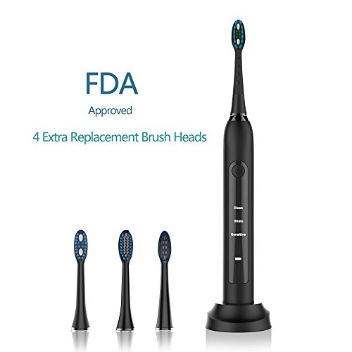 3 Brushing Modes: Clean: 41000 times/ minute - standard mode, thoroughly remove your plaque. White: 48000 times/minute - huge powerful for your to keep your white teeth. Binding 2 minute whitening and 30 seconds brightening and front teeth polishing. Sensitive: 31000 times/ minute - specially for sensitive teeth. Super soft mode for gums. Charging Fast, Longer Use: The toothbrush will be fully charged after 15 hours and it can be used last for 240 minutes. That is you can use it almost 1 month after one time charge( 4 minutes/day)