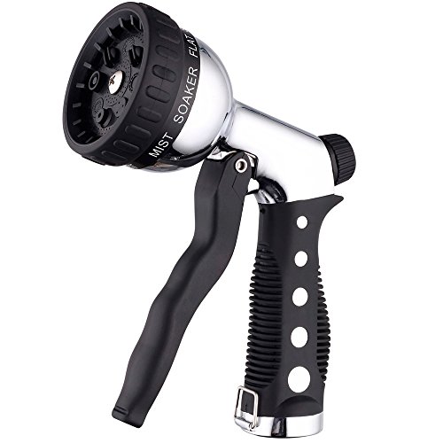 -. Brand : Attican -. EAN : 0714439020590 -. Feature : Heavy duty hose nozzle made from premium materials / Can stand high water pressure without leakage / Non-slip handle provides nice grip / With water control system for easy spraying and cleaning experience / 100% Satisfaction Guarantee or your money back! -. Label : Attican -. Manufacturer : Attican -. ProductGroup : Lawn & Patio -. ProductTypeName : OUTDOOR_LIVING -. Publisher : Attican -. Studio : Attican -. Title : Black Iron Garden Hose Nozzle, 8 Pattern Adjustable -. UPC : 714439020590