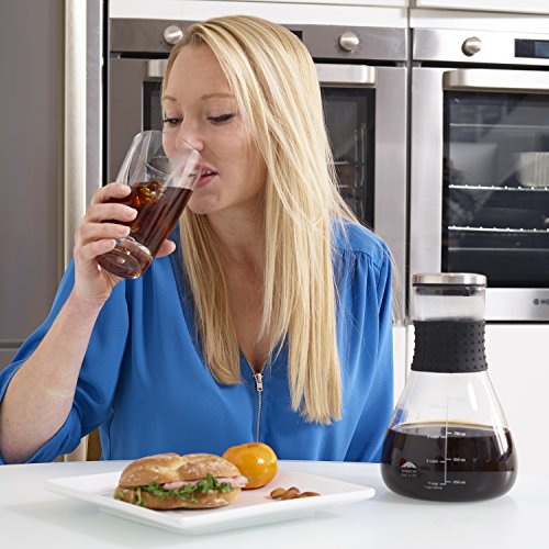 EASY TO STORE & USE: This designer glass carafe model is dishwasher safe and fits perfectly within your fridge shelf. The silicone grip keeps the carafe nice and handy. Our carafe is leak-proof and makes professional-quality brewing easy.