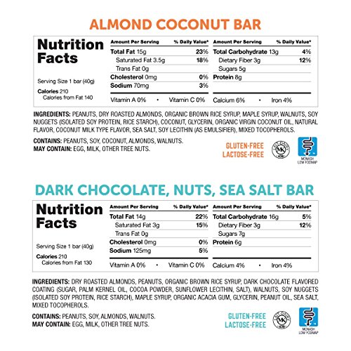 - Every Almond Coconut bar is made with all natural, simple ingredients, for a healthy, nutritious and satisfying snack. The bars are formulated to be lactose free and gluten free. Every bar contains delicious peanuts, dry roasted almonds, walnuts and coconut.