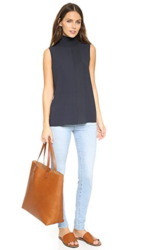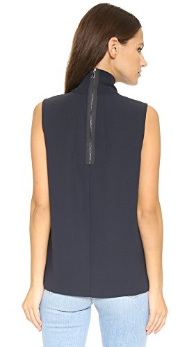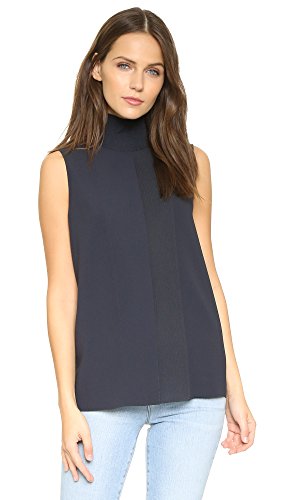 A pintucked center panel adds texture to this boxy Vince top. Ribbed jersey forms the turtleneck, and a covered front vent relaxes the hem. Sleeveless. Exposed back zip. Raw hem.