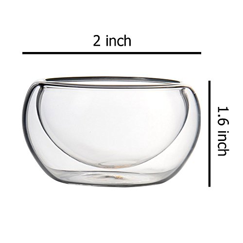 -. Feature : Volume:50ml / Size: 2.5 inch * 1.6 inch / Complete Glass design to keep clean and safe / Durable double design creates dramatic optical illusion and prevents condensation