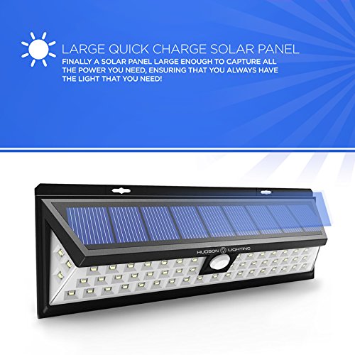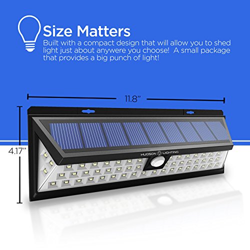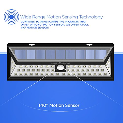 Hudson Lighting- Solar Lights Outdoor Patio Deck Lights 54 LED-500 Lumens- Outdoor Motion Sensor Security- Sun Powered Lighting For Yard, Backyard, Pathway-Motion Activated Detector-1 Year Warranty