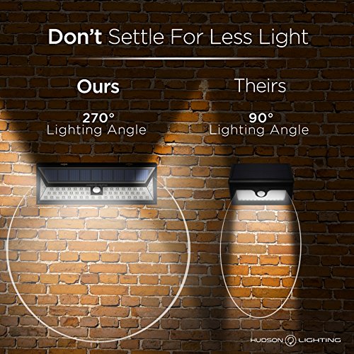 - OUTDOOR SAFETY & SECURITY – Hudson Lighting’s high-powered outdoor solar LED light automatically lights your home in bright, beautiful light to keep residents safer while walking or working outside and offers better security in those dark, hard to light areas. Keep these in mind for deck lighting too!