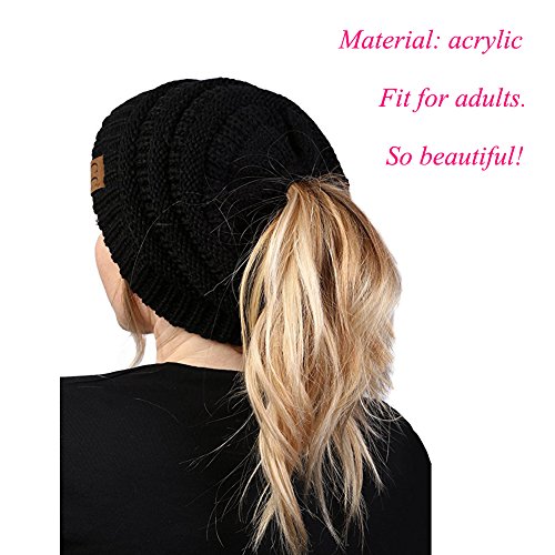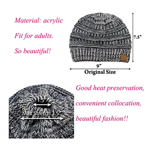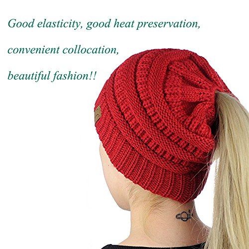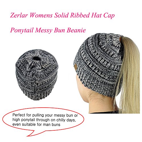Product Description Zerlar Womens Stretch Cable Knit Hat Cap Solid Ribbed Ponytail Messy Bun Beanie, There is a round hole at the top of the cap that makes the ponytail unfettered by a hat. Questions Answers: Q: How / why do I wear it? A: Keep your whole head warm without your bun or hair in the way, high or low opening, depending on how you wear it. Top hole to for the ponytail to go through. Q: Where/ When will we need it? A: When you need to camping, cycling, snowboarding, hunting,skiing, cycling, partying, shopping, going to the movies and etc, you will need it! Specifications: 1. Material: acrylic. 2. Size: Spread out about 20CM/ 7.87". 3. Color: 8 color for choose, Purple, Black, White, Rose red, Red, Sky blue, Dark grey, Camel. 4.Washing instructions:Machine washable, better handwash. Package Including: 1 Pairs x Zerlar Womens Stretch Cable Knit Hat Cap; Zerlar: Women, Fashion and Beauty. "ZERLAR" Trademark No.: 86314155. 100% Brand New item from Zerlar, Free Shipping from HongKong about 7-15 shipment days; Hope you can get the best service from Zerlar Store.