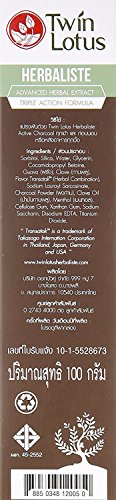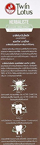 TWIN LOTUS, PRODUCT OF THAILAND BY Siam-Mana-Group.Twin Lotus Active Charcoal Toothpaste Herbaliste Triple Action MADE In THAILAND Help relieving sensitive teeth and reducing cigarette, tea and coffee