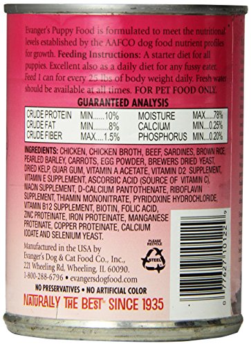 A Complete Dinner for Your Canine CompanionLife feels great when you eat right. Treat your adorable dog to Evangers Complete Classic Dinners. Highly palatable, the meals are nutritious and tasty. Available in 12 x 12.8-oz. cans, these classic dinners come in two different flavors -- Lamb and Rice and Chicken and Rice. Plus, these dinner meals also come customized for dogs of different ages, right from Evangers Complete Classic Dinners Puppy for pups to Evangers Complete Classic Dinners Seniors for senior adult dogs.