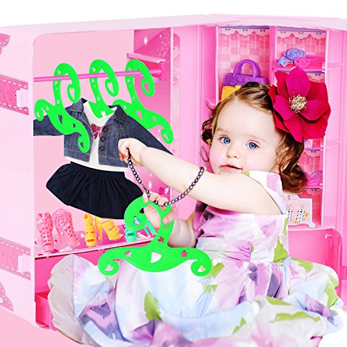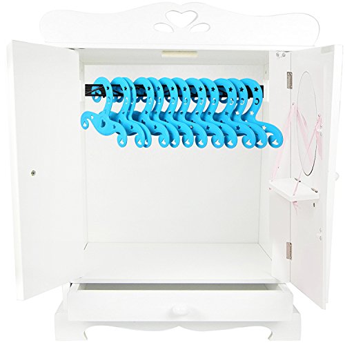 -. Feature : Hangers made to fit the 18 inch doll. These products are designed and manufactured by Rainbow Yuango. We guarantee your doll accessories will look best, unique, adorable and cuddly. / Made of Sturdy and durable Plastic materials, hangers have great load-bearing capacity. Hangers are not easy to break. Made of high-quality environmental Plastic which are light and safe enough for your baby hold in the hand and play for all day. / With exquisite workmanship as well as precise and skillful handmade, the Hollowed Out patterns add more beautiful and gorgeous feels. The hearts and stars hollowed out pattern make you feel in a fairy tale. / 12PCS same color in one collection. Clothes and decorations in the picture are not included. The Hangers are shipped in one set as the picture showed, not at random. Sweet gift for home decoration, children birthday, Christmas, Thanksgiving, baby shower and other memorial day. / Clean: Firstly wipe the dust off with dry cotton cloth. Use cotton cloth dipped in cold water to gently wipe the stain. Do not use cleaning agents or hot water, so as not to damage the surface of the pigment layer. Storage: You can hang the clothes up with hangers.