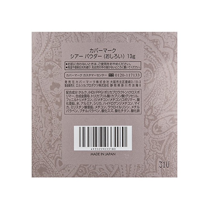 전성분:talc,(HDI/PPG/폴리 커브 러 락토《》)크로스 중합체,합벼락부자 운모,새(커브 re《루》산/커브 인산)글리세릴,회《니루토리메치콘》,(더《메치콘》/《메치콘》)《고포리마》,산화 아연,수,알루미나,실리카,하이드로 겐 더《메치콘》,my car,밀리《스친》산 아연,《메치콘》,설대 러 이《루리신》,메칠파라벤,《부치루파라벤》,산화 주석,산화 티타늄(티탄),산화철