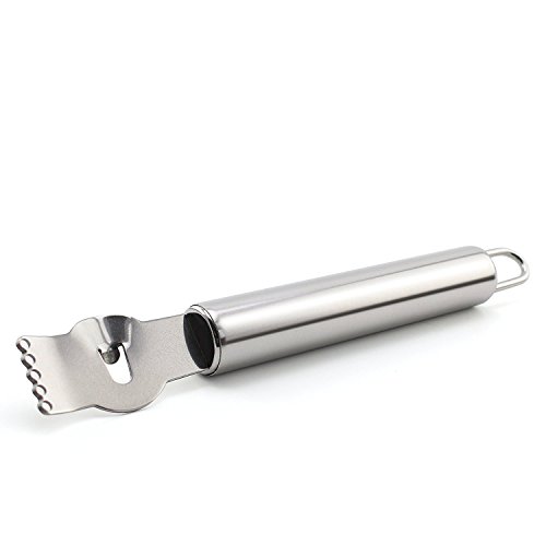 AWARD WINNING INNOVATIVE DESIGN. -- This lemon peeler has a sharp holes in its stainless steel head that remove the zest from the pith of lemons and other citrus fruits easily, You might hear the claim that the pith adds unwanted bitterness that takes away from the effect of the citrus. WITH HANGING LOOP!