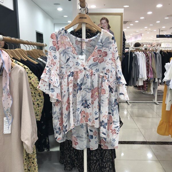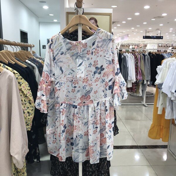 여름에 입기 좋은 프릴 플라워패턴 블라우스입니다.