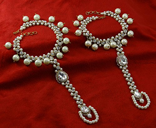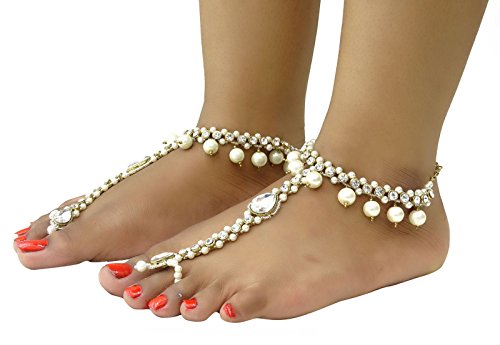 -. Binding : Jewelry -. Brand : Banithani -. Department : womens -. Feature : Show off your fabulous traditional look as you adorn your feet with these uniquely crafted anklets attached with adjustable size toe rings / Sale For: 1 Pair Anklet; Metal: Alloy / Size: Toe to Ankle : 5.6 inches Total Length : 10.5 inches / SKU: SA1103A; Made in India / Discover more Beautiful Jewelry from our collection, click on the link "Banithani" above the title. -. Label : Banithani -. Manufacturer : Banithani -. Model : SA1103A -. MPN : SA1103A -. PartNumber : SA1103A -. ProductGroup : Jewelry -. ProductTypeName : FASHIONNECKLACEBRACELETANKLET -. Publisher : Banithani -. Studio : Banithani -. Title : Banithani Indian Goldtone Toe Faux Pearl Anklet Barefoot Ankle Chain Bracelet Jewelry Gift For Her