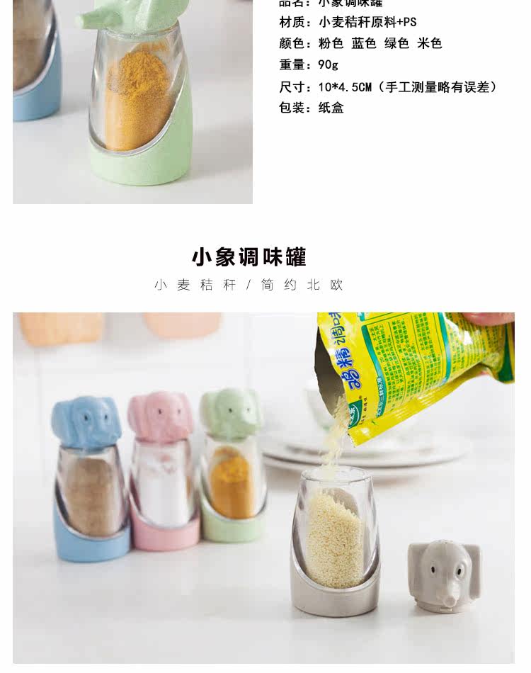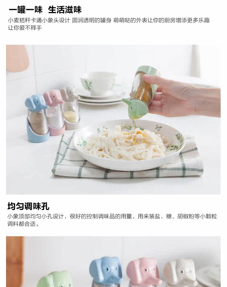 调味瓶 创意小麦秸秆小象调味罐 时尚厨房用品 烧烤胡椒粉调料盒