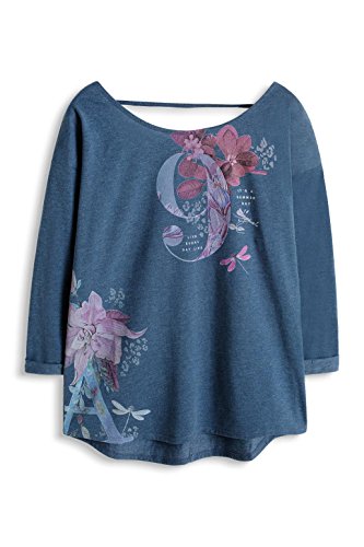 -. Feature : Feminin bedrucktes T-Shirt mit 3/4-Arm und Rückendetail / Mit U-Boot Ausschnitt vorne sowie weitem Rückenausschnitt