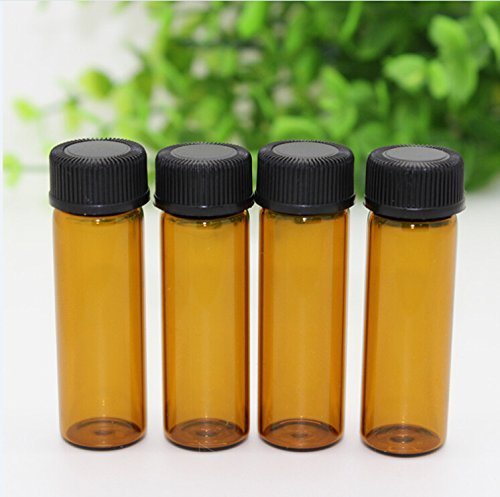 24PCS 5 ml Amber Glass Empty Refillable Massage Essential Oil Essence Makeup Water Pure Dew Container Bottle Vial Jar Pot with Orifice Reducer Plug and Caps