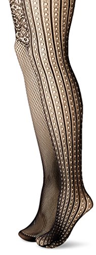 Jessica Simpson Women's Ashley Net Dainty Web and Sara-Lee Floral Swiss Dot Tights 2-Pack, Black, Medium/Tall