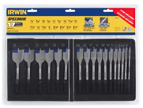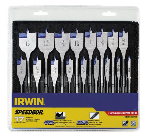 IRWIN Tools SPEEDBOR Blue-Groove Pro Spade Bit Set with Storage Case, 17-Piece (1792761)