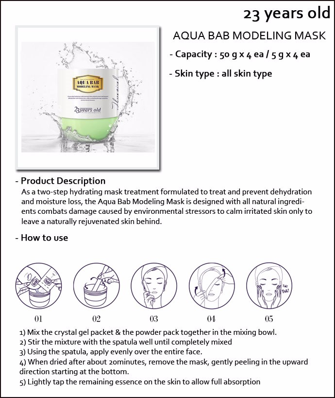 The Aqua Bab Modeling Mask comes with a crystal gel (kind of like an essence) to be mixed into the modeling mask powder to form an extra nourishing modeling pack.