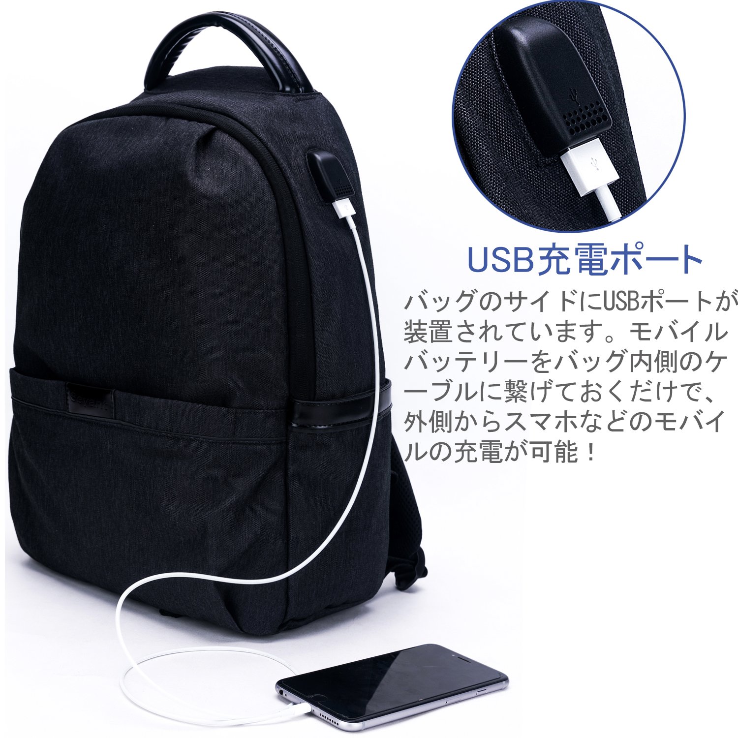There is a USB port on the side of the bag.
