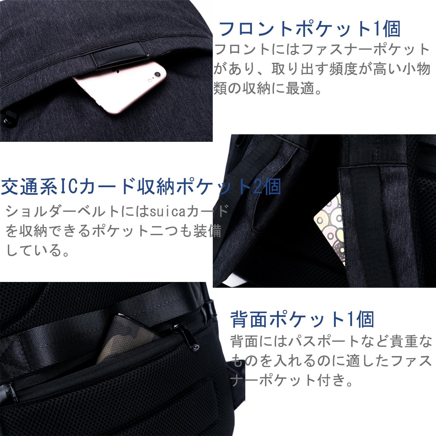 Also, the shoulder belt is equipped with two open pockets that can store suica cards.