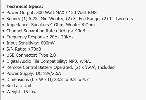 Pyle 300 Watt Bluetooth Soundbar with USB/SD/FM Radio and Wireless Remote (Black) (PSBV200BT )