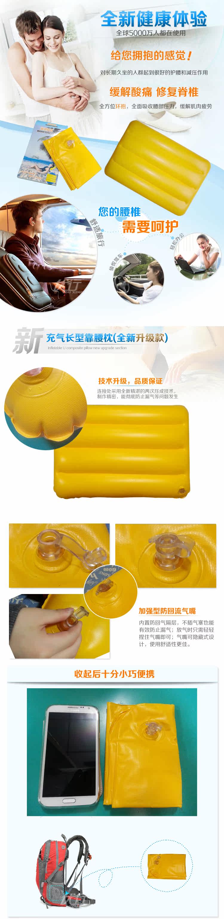 Square pillow to relieve fatigue and relax the lumbar spine, traveling by car