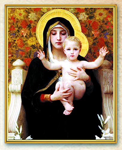 BOUGUEREAU: MADONNA OF THE FLOWERS GOLD FRAME EVERLASTING PLAQUE