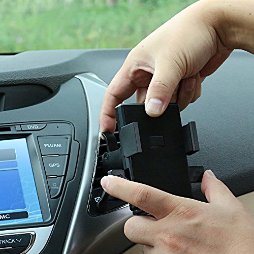 Easy to install and release on vehicles air vent -- No suction cup, no sticky pad necessary. No tools required -- only one hand is needed to install or release this mount,Press the arms on both side to clamp mobile phone or device.