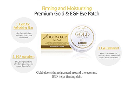 - Feature : Made In Korea / Includes : 60PCS(30 Pairs) / These are jelly-like patches soaked with Gold and EGF. They are super soft and gently adhere onto the skin. / Offer your parched skin an intensely hydrating infusion of moisture plus vital nutrients and experience the dramatic firming and cooling results you thought only a professional spa treatment could deliver.