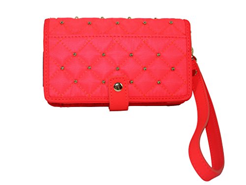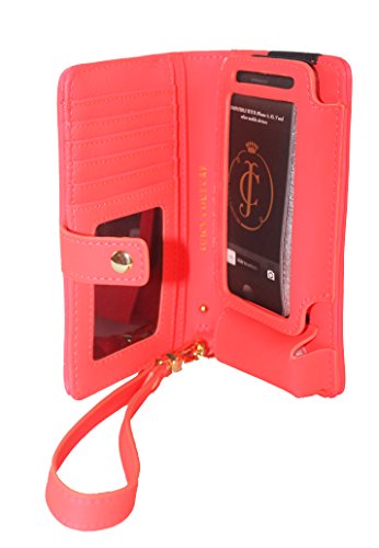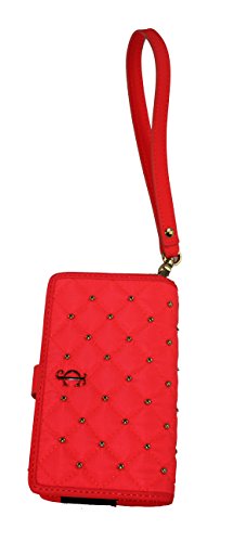 No need to carry around a bulky purse around. The Tech Wristlet from Juicy Couture can handle all your bare essentials. Luxurious quilting and tough studs enrich this tech wristlet with I.D. window, credit card holder, cash and cell phone pocket. Removable strap.