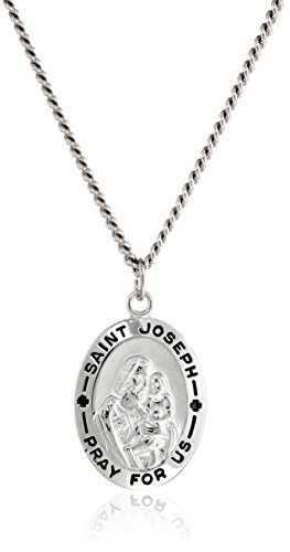 Men's Sterling Silver Oval Saint Joseph Pendant Necklace with Stainless Steel Chain, 24"