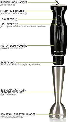 Witness ease, convenience, and versatility at work-right in your own kitchen.Discover a world of innovative cooking possibilities with the Ovente HS580 Handheld Immersion Blender. It makes blending and mixing any soft foods a pleasure because it makes it SO easy and effortless, that's actually fun! Its lightweight body along with its ergonomically-designed, non-slip handle is so comfortable to hold and control that cooking won't ever feel like a chore again. Whip up all of your favorite gourmet soups, guacamole, smoothies/shakes, cake batter, salsas, sauces, marinades, salad dressings, or even homemade baby food for your precious bundle of joy with just one press of a button.