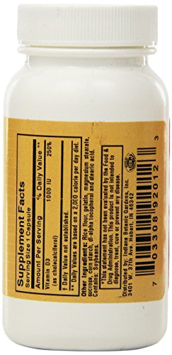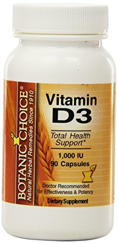 -. Binding : Health and Beauty -. Brand : Botanic Choice -. EAN : 0703308920123 -. Feature : Provides 1000 iu of cholecalciferol, the same form of vitamin d created from sun exposure / Supports bone strength / Is involved in the absorption of calcium / Maintains strong immune function and supports heart health / Keeps you feeling energetic and strong -. IsAdultProduct : 0 -. Label : Botanic Choice -. Manufacturer : Botanic Choice -. NumberOfItems : 3 -. PackageQuantity : 3 -. ProductGroup : Health and Beauty -. ProductTypeName : HEALTH_PERSONAL_CARE -. PublicationDate : 2011-03-23 -. Publisher : Botanic Choice -. Studio : Botanic Choice -. Title : Botanic Choice Vitamin D-3 1000 IU Capsules, 90 Count (Pack of 3) -. UPC : 703308920123