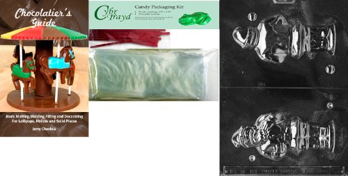Cybrtrayd Hollow Santa Chocolate Mold with Chocolatier's Bundle of 25 Cello Bags, 25 Red Twist Ties and Chocolatier's Guide
