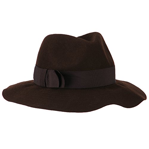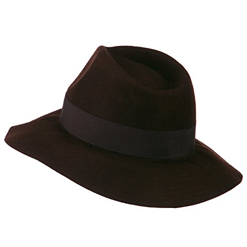 -. Binding : Apparel -. Brand : Jeanne Simmons -. Department : womens -. Feature : Made of 100% wool felt. / One size fits most ladies, fitting up to XL. / Adult/Female. / Fitted with an inner hat band. / Crown measures 4 inches deep. -. ProductGroup : Apparel -. ProductTypeName : HAT -. Title : Women's Big Brim Fedora - Brown