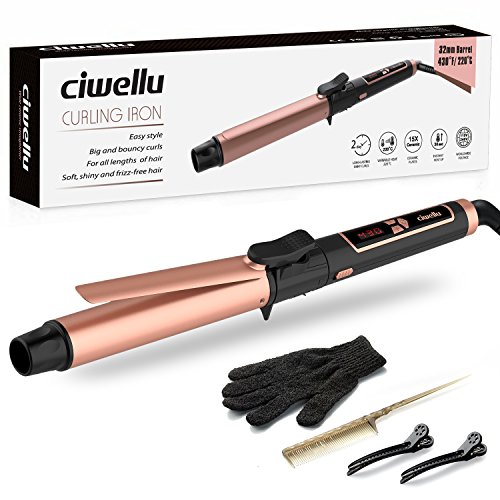 Hair Curling Iron 1.25 Inch Curling Wand Tourmaline Ceramic Barrel Professional Hair Salon Curler Tool for All Hair Types, LCD Display Temperature(...