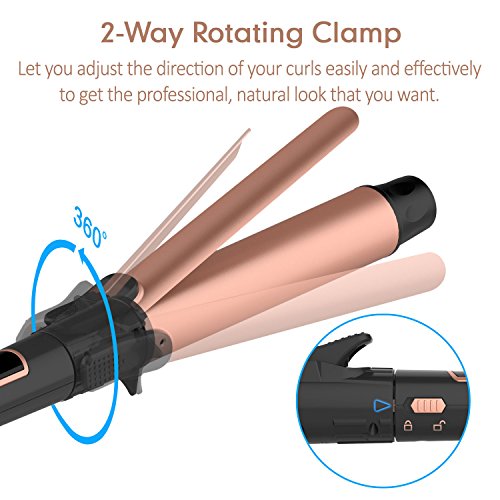 ▶【Easy To Use For Curl Hair Style】 360°manual rotatable clamp let you make hair styles easy, fast and fun. Lock rotatable button to twirl iron same as traditional devices