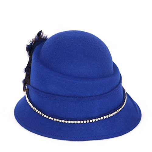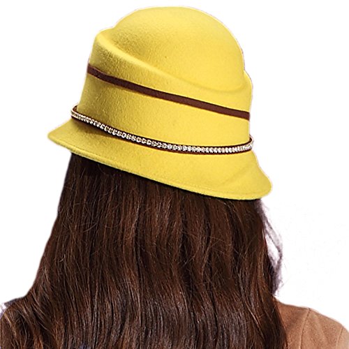 -. Feature : women winter fedora bucket hat wide brim stones 100% wool / Hat size : Hat diamter:8.7 inches .Height:5.1 inches .Hat brim:2.4 inches / Hat circumference:22.64inches (drawstring adjuster inside) / Colour :Yellow. royal blue / Hat care: dry clean only