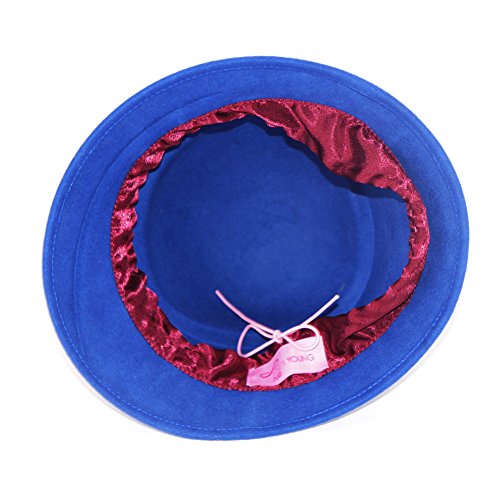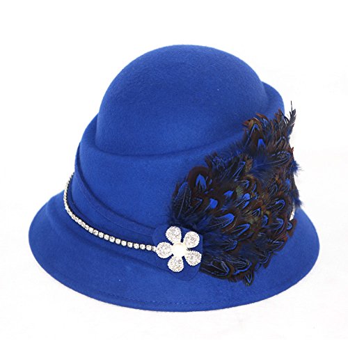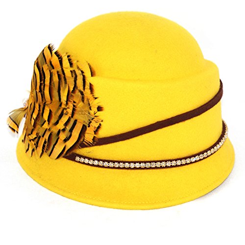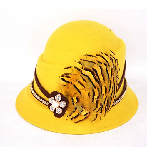 -. Title : June's Young Women Winter Wool Felt Hats Chapeau Fedora feather (yellow Blue)