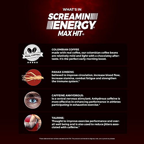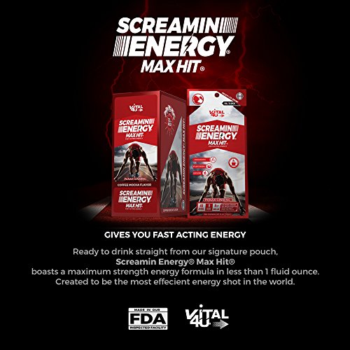-. Title : Screamin Energy Max Hit, Maximum Strength Energy Shot, Coffee Mocha Flavor, 24 Count