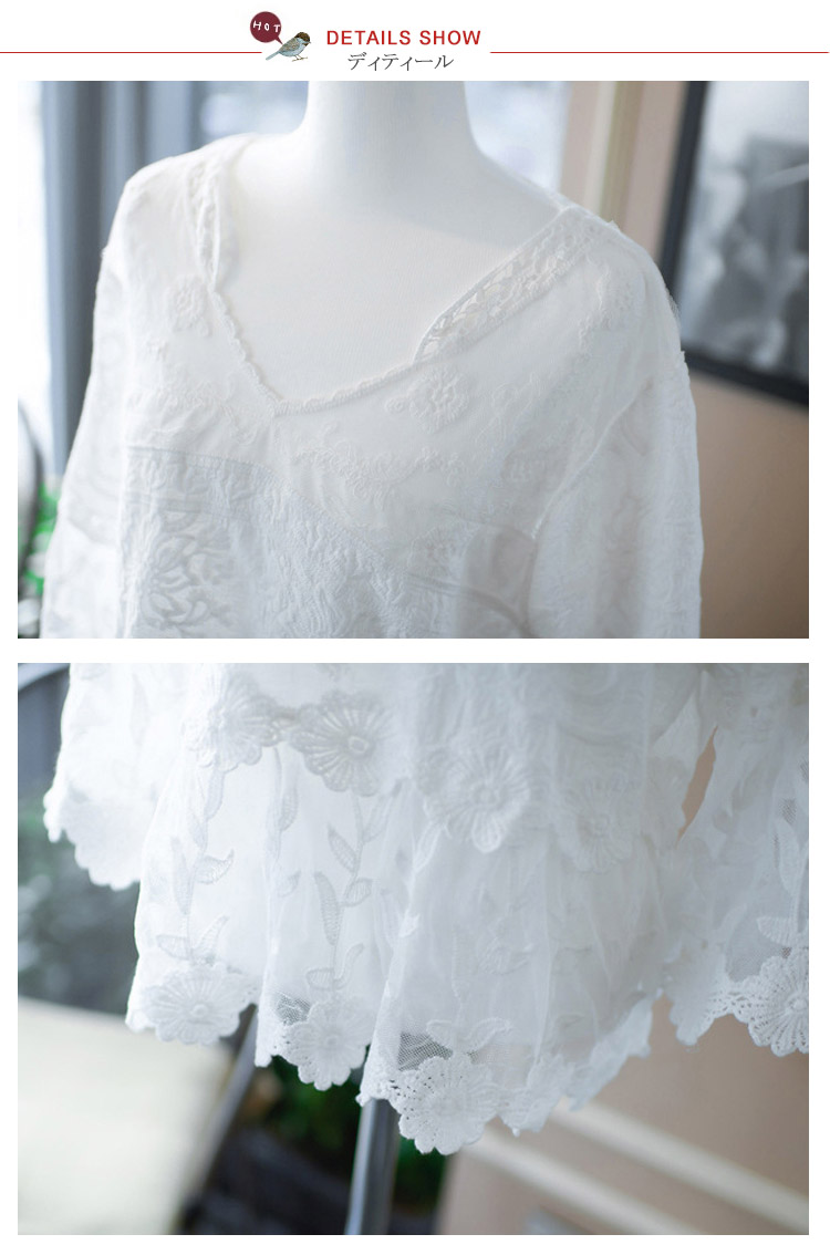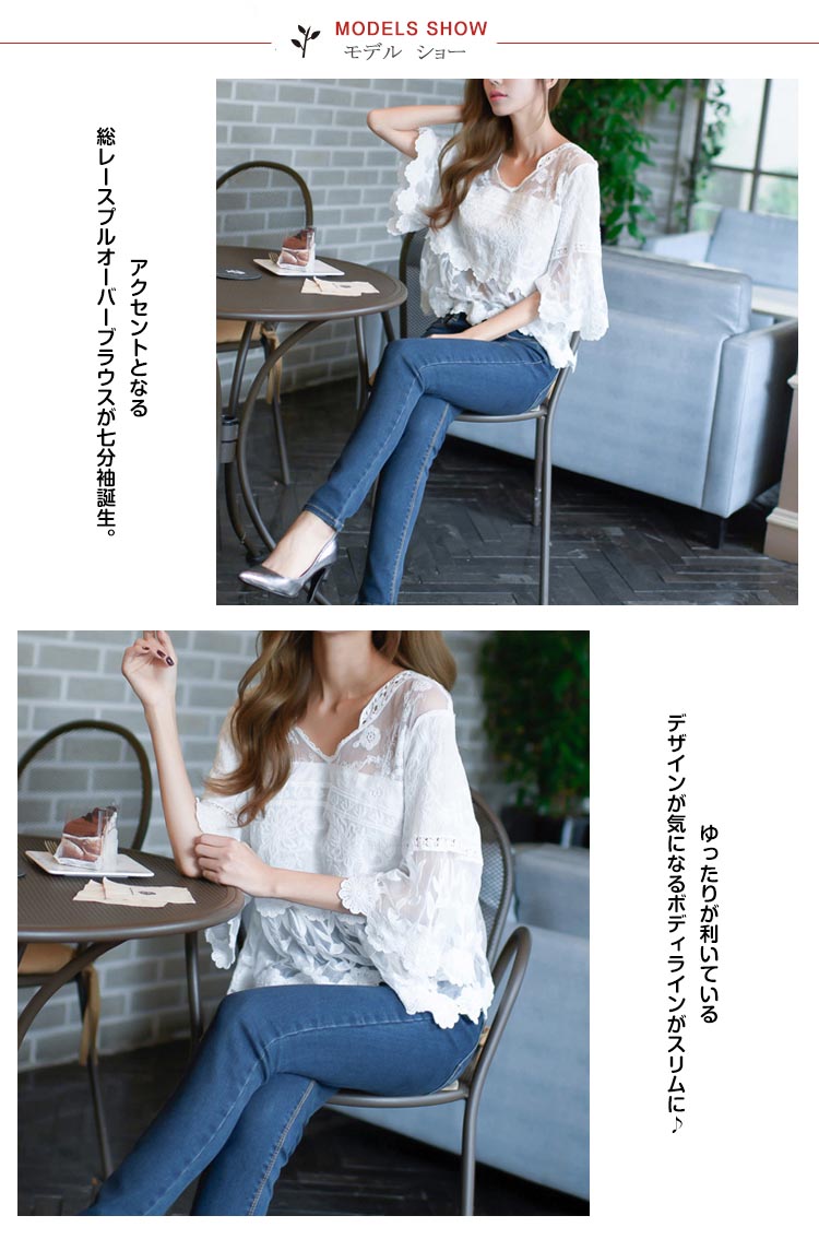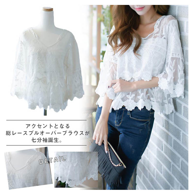 | アクセントとなる総レースプルオーバーブラウスが七分袖誕生。ゆったりが利いているデザインが気になるボディラインがスリムに♪全体に贅沢なほど施されたレース刺繍がふんわりと女性らしい可愛い演出に!このまま一枚使いでもジャケットのINにしても様々なシーンに対応OK♪どんなボトムスと合わせやすくて、カジュアルにもキレイメにもキュートにも大活躍してくれる1着です。 | |