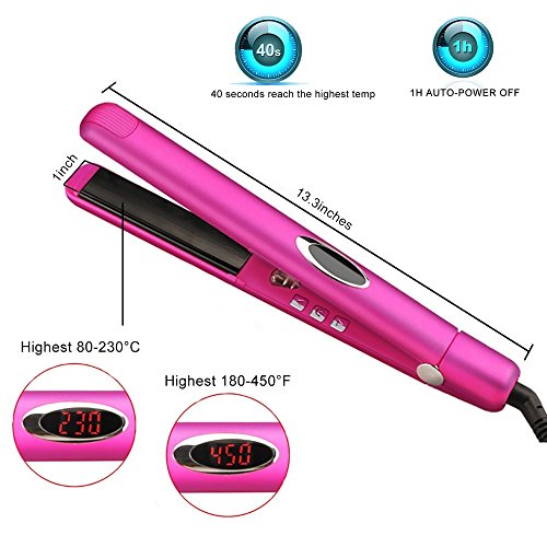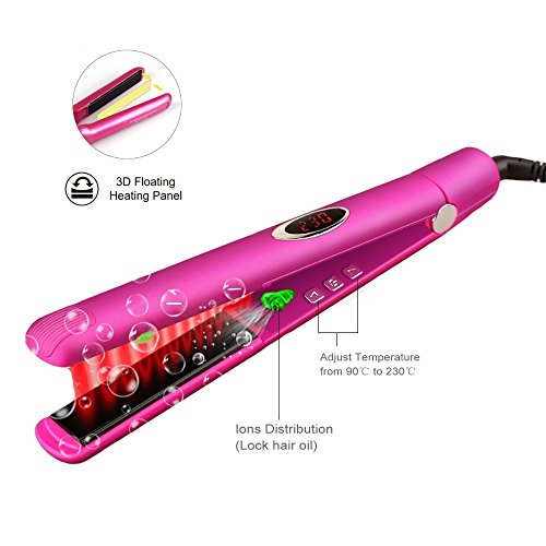 Flat Iron, Hair Straightener, Hair Flat Iron Straightener Infrared Ionic with 1 inch 3D Floating Plate Ceramic LCD Display (Pink)