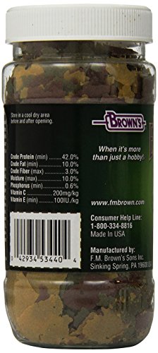 Brown's Encore Natural Goldfish Flake Food is a nutritionally enhanced, color-enhancing daily diet for all varieties of goldfish. Our unique color-enhancing formula naturally enhances fish's brilliant colors without the use of artificial colors or preservatives. Our formula improves food utilization and minimizes fish waste for cleaner, clearer water. Each pellet contains Spirulina, nature's super food, plus vitamins, minerals, trace elements, and Vitamin C to help support a healthy immune system.Feature