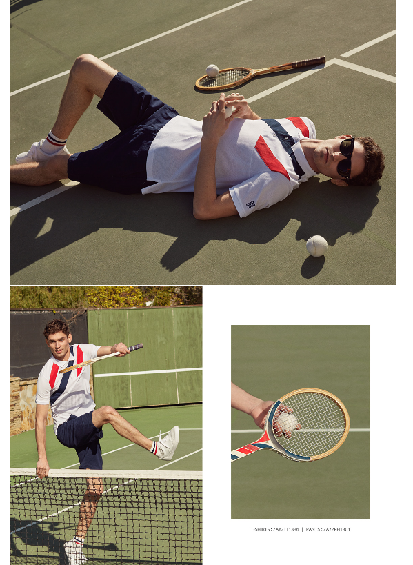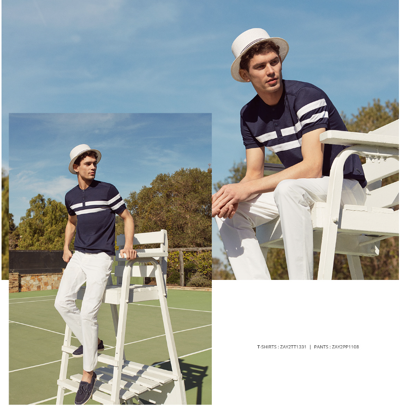 OLZEN  2018년 S/S 에어메쉬 프린트 블록 티에리 티셔츠