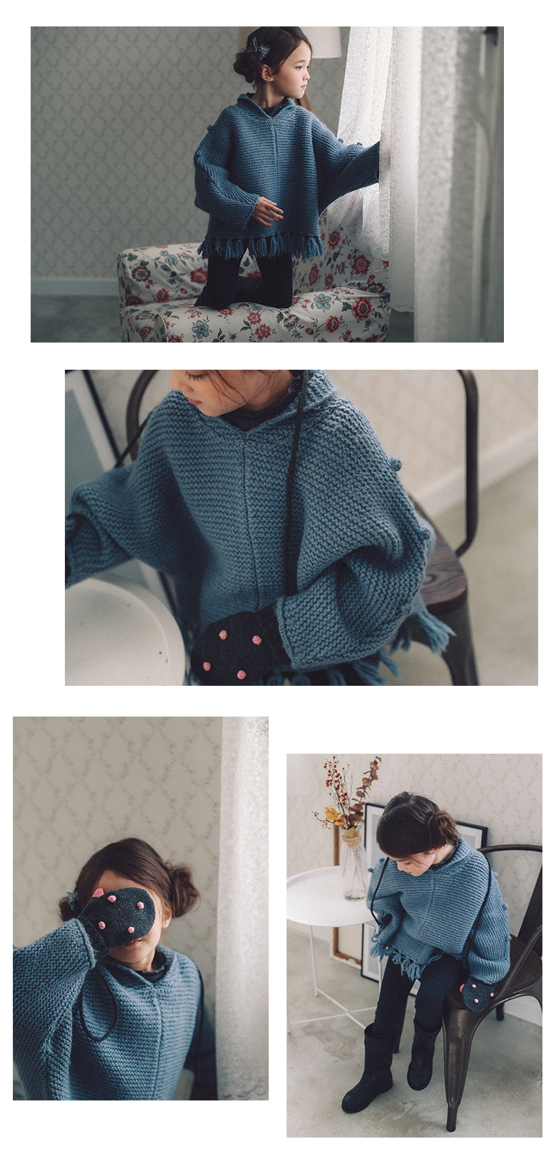 소매 폼폼장식과 밑단 타슬장식이 포인트가 되어 보여집니다.
