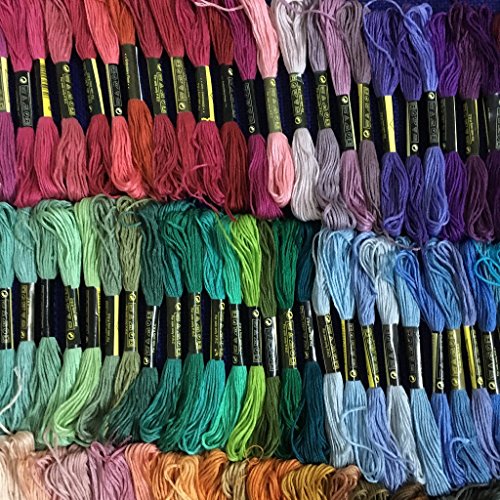 -. Feature : ❀ High Quality Crewel Embroidery Floss: The hand embroidery thread is made of soft, smooth and silky polyester-mixed cotton, which is more flexible and stronger and durable, no worry about floss pilling and or falling apart. / ❀ Various and Vivid Colors: Each package comes with 150 skeins pretty and brilliant rainbow colors as shown in the pictures. There are lots of blue, green, red, orange, pink, yellow, grey, purple, etc. / ❀ DIY Cross Stitch Threads Projects: These cotton threads could be used for making friendship bracelets, children's crafts, sewing projects, tassels, corsages, ornaments, or any cute embroidery decorations. / ❀ Best Utility Embroidery Thread: Great for children, moms, grandmoms, perfect gift for friends, colleagues, neighbours, cross stitch beginners, or favors. Just enjoy happy time with lover. / ❀ Size: Each skein is 8 meters in length and composed of 6 strands, grammage of each threads is approx. 2.4g.